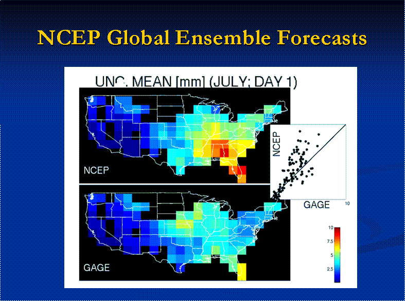 The figure below illustrates the importance of hydrologic preprocessing of model output products so that they can be used as input for AHPS hydrologic ensemble forecast models.